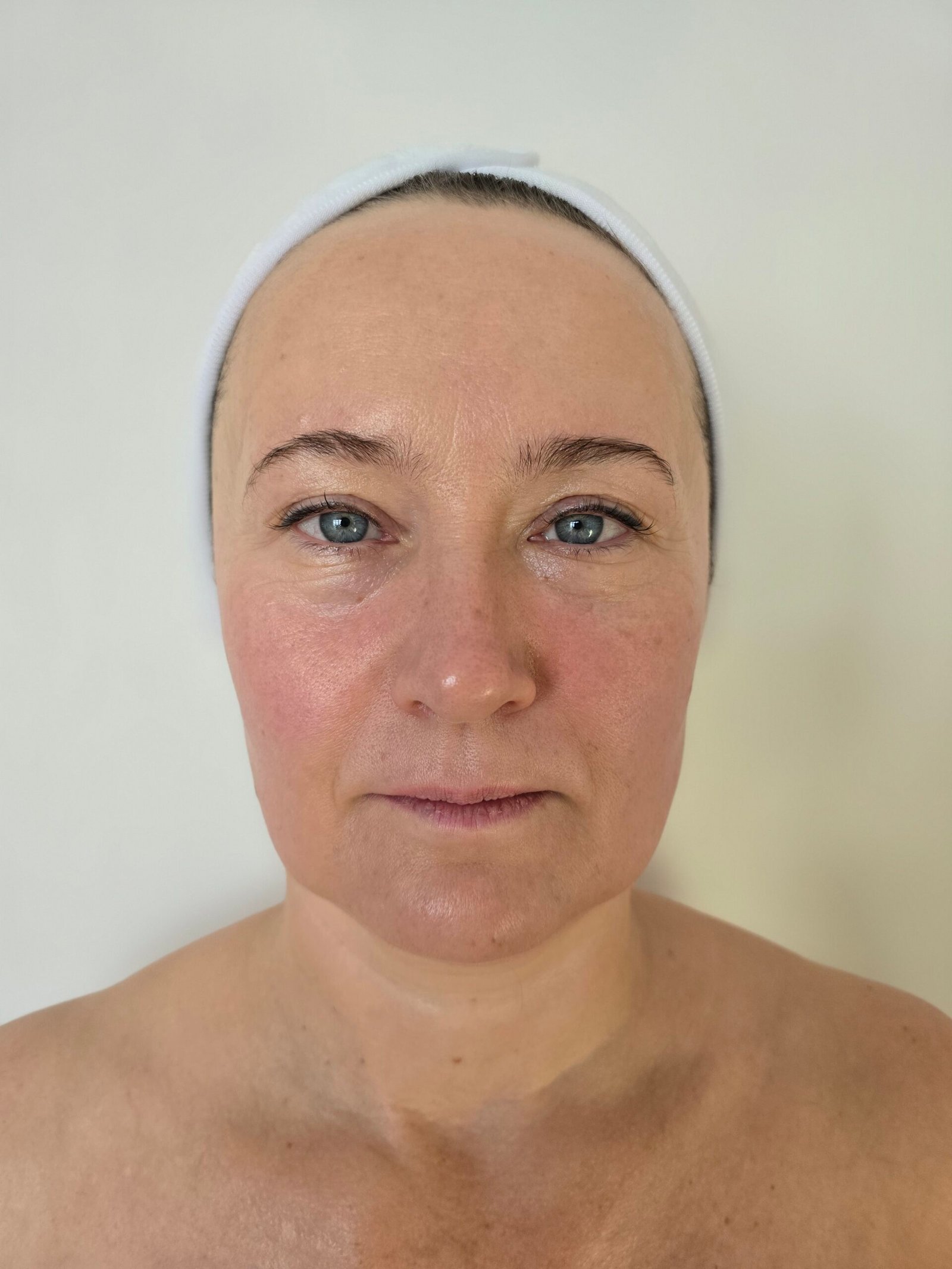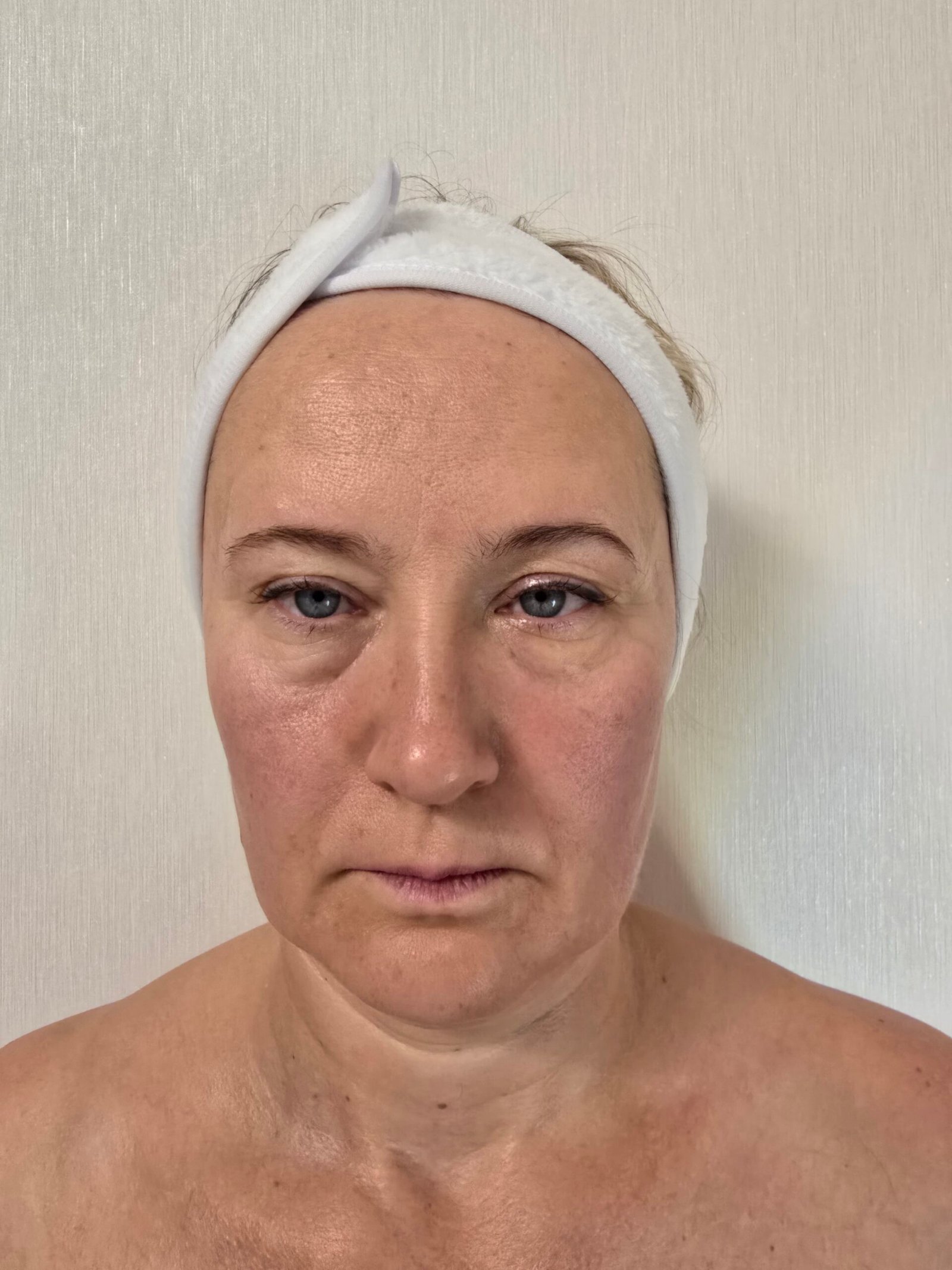 Vor der Behandlung wirken Gesichtszüge häufig angespannt, die Muskulatur verhärtet und Konturen weniger klar definiert. Die Haut wirkt müde oder gestresst.